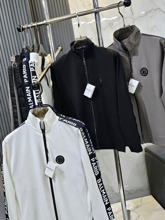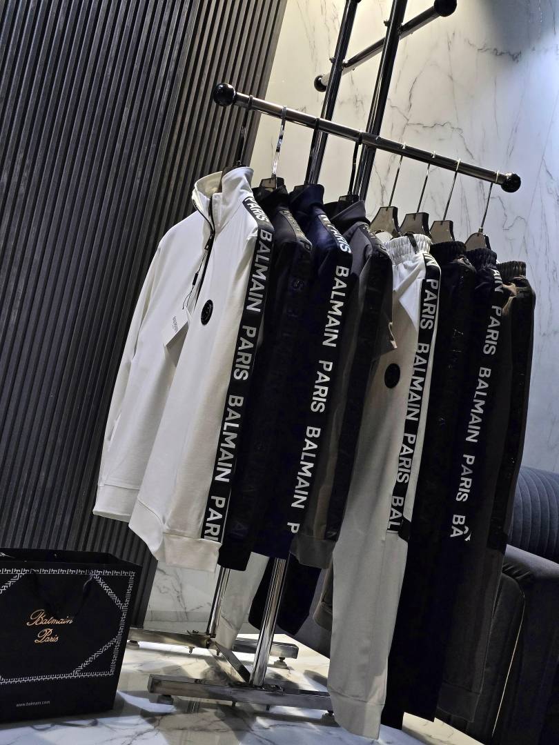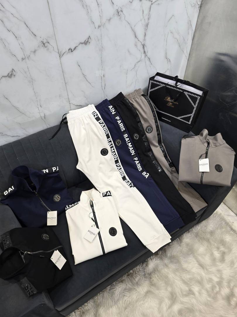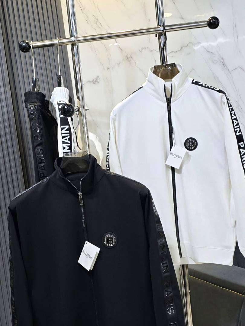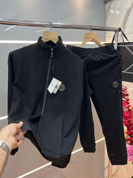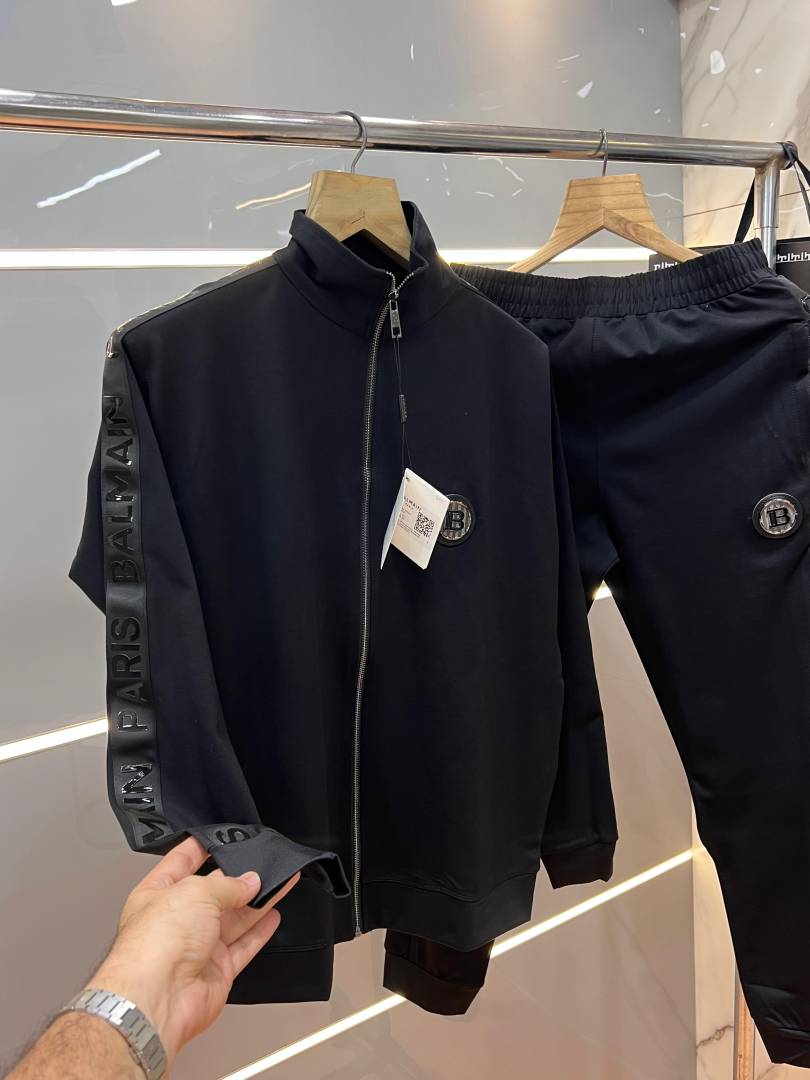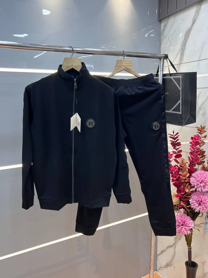 Balmai n Paris Black Premium Imported Fabric Shoulder Strip Metal Logo Zipper style Tracksuit 3405