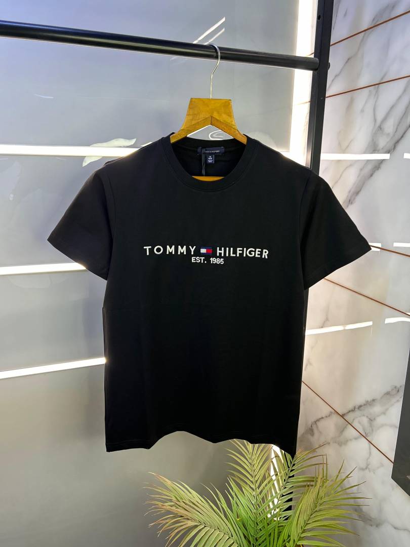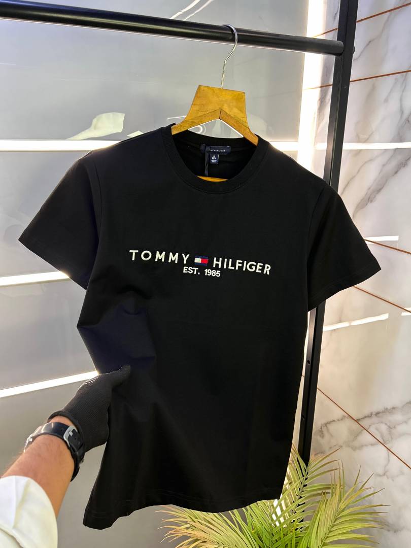 Sale Tommy_Hilfiger Black Embroidery Print Premium Round Neck T-shirt F2452-BL