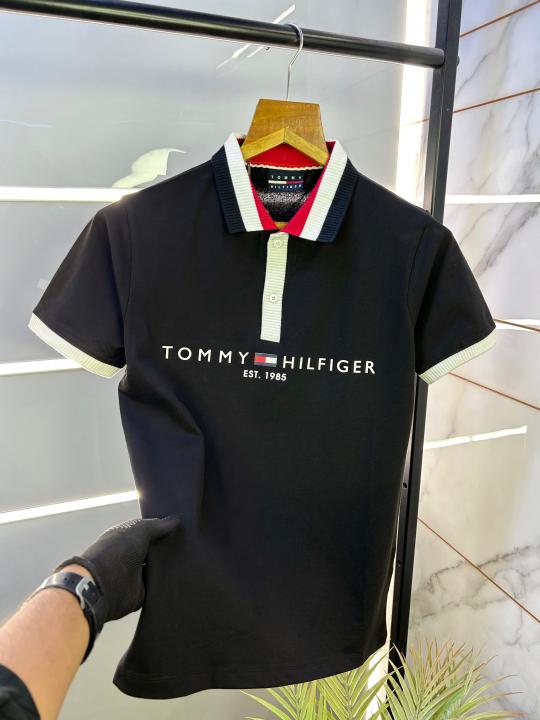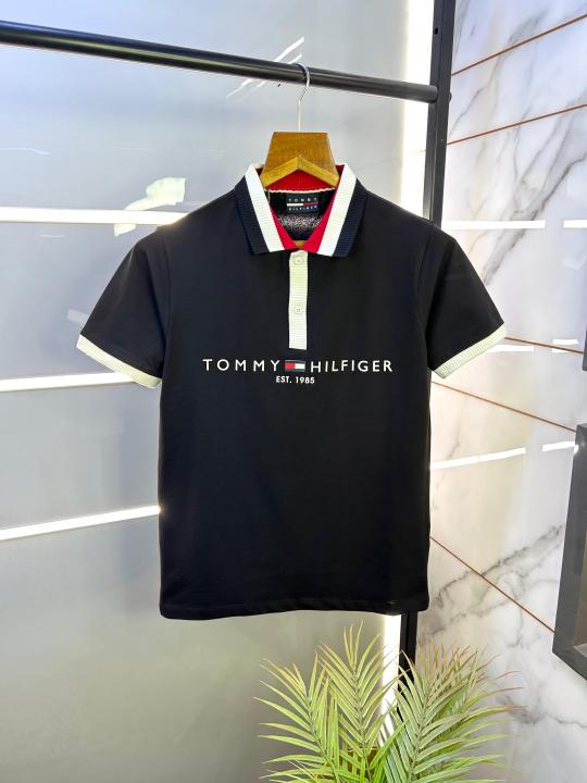 Sale Tommy_Hilfiger Black Polo Premium Collar Neck T-shirt F2578-BL