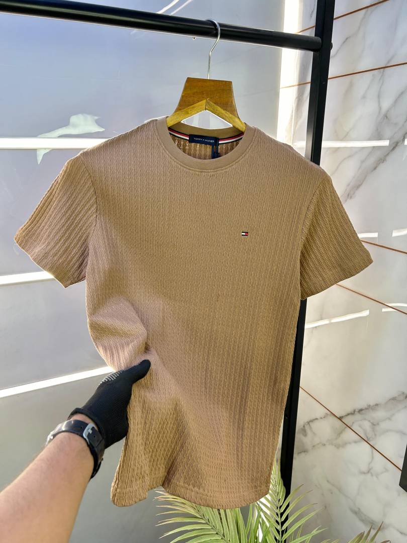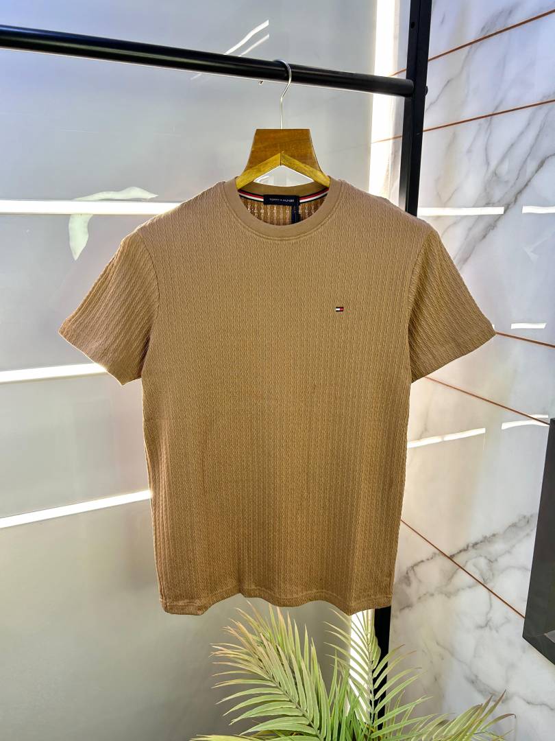 Sale Tommy_Hilfiger Brown Knitted Super Premium Round Neck T-shirt F2482-BR2