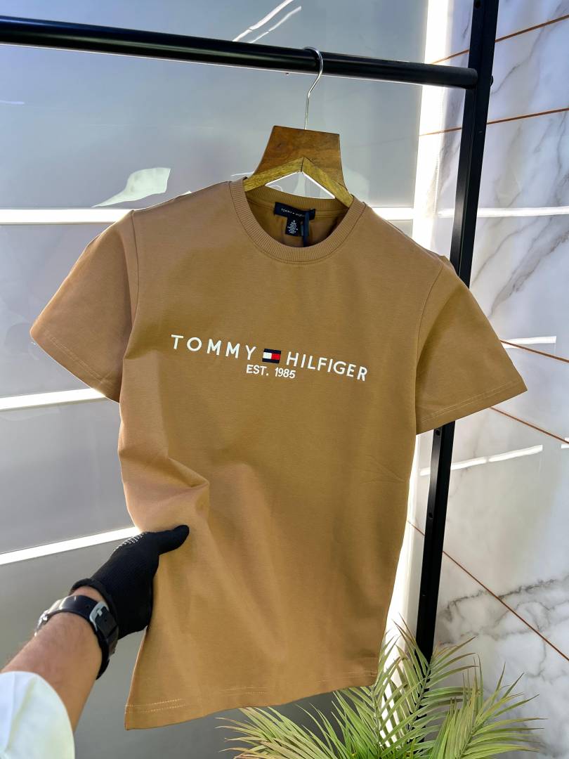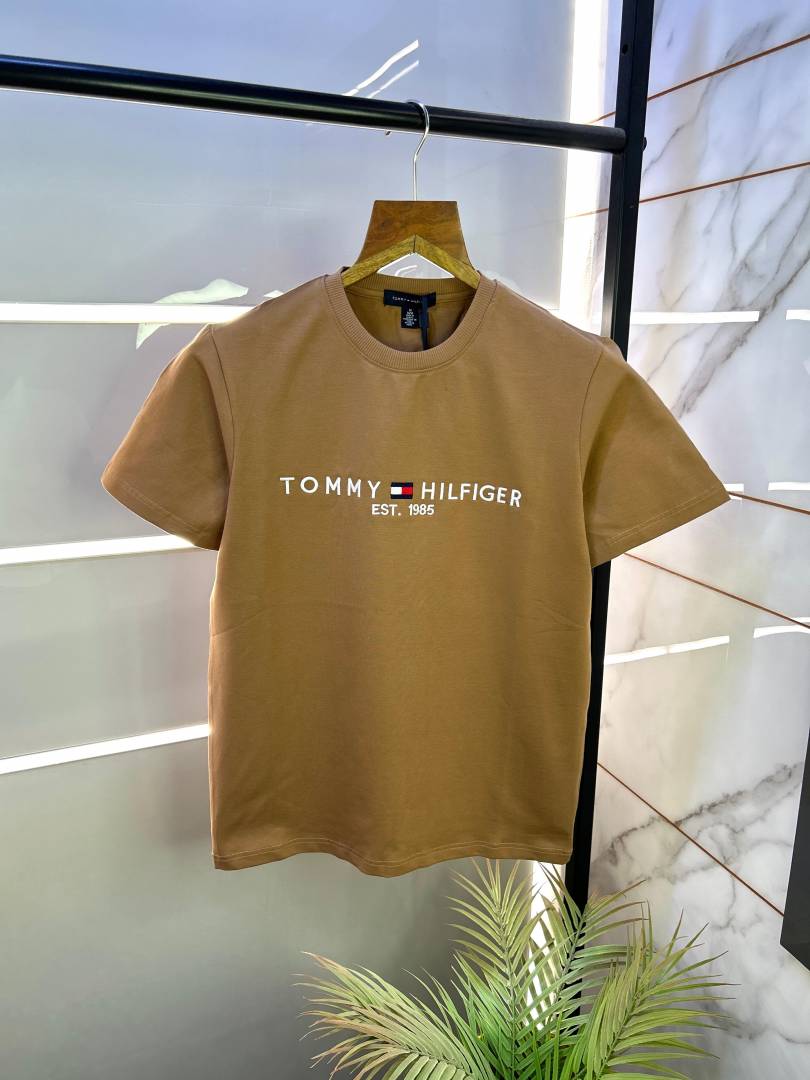 Sale Tommy_Hilfiger Light Brown Embroidery Print Premium Round Neck T-shirt F2452-LBR